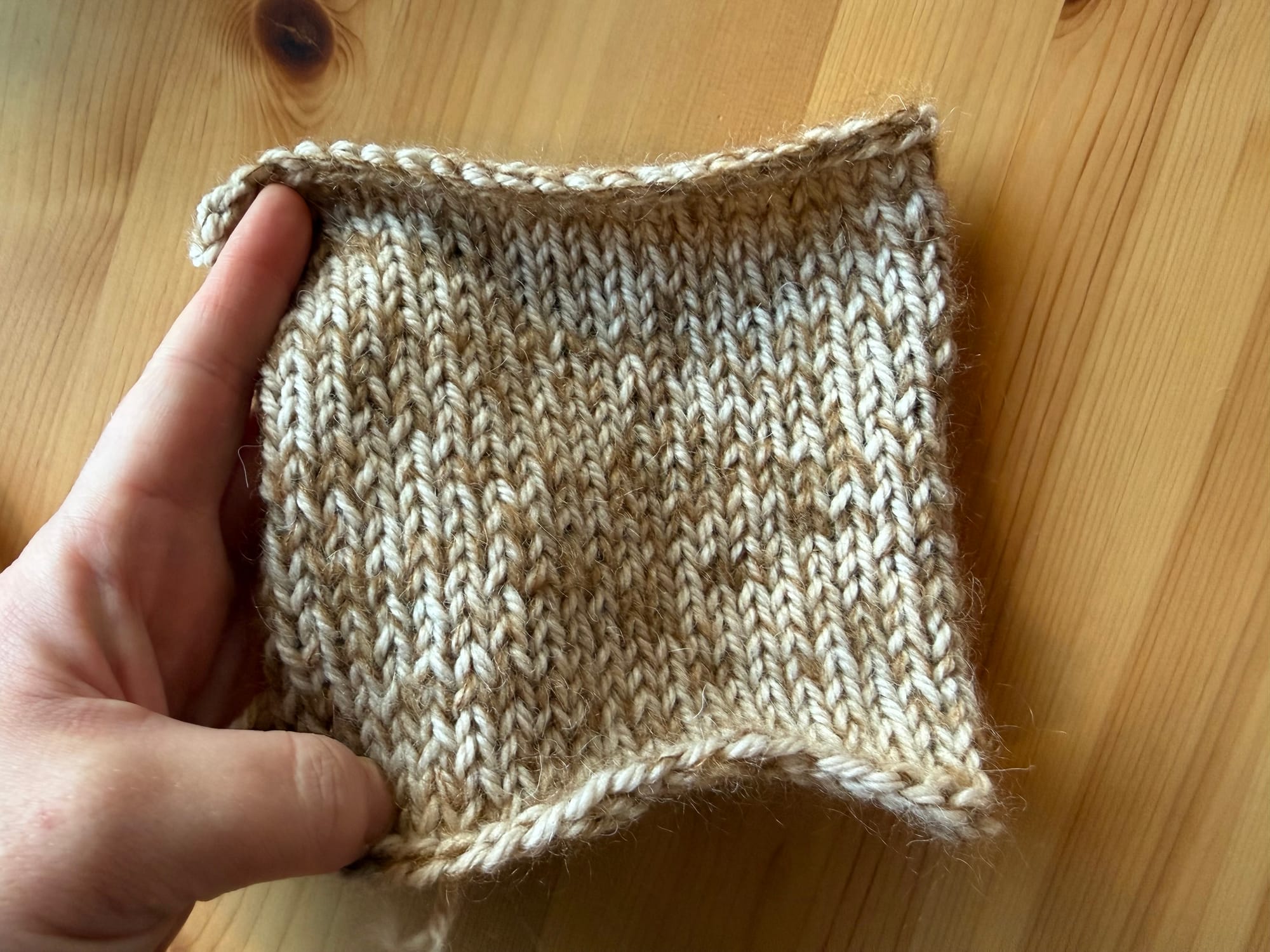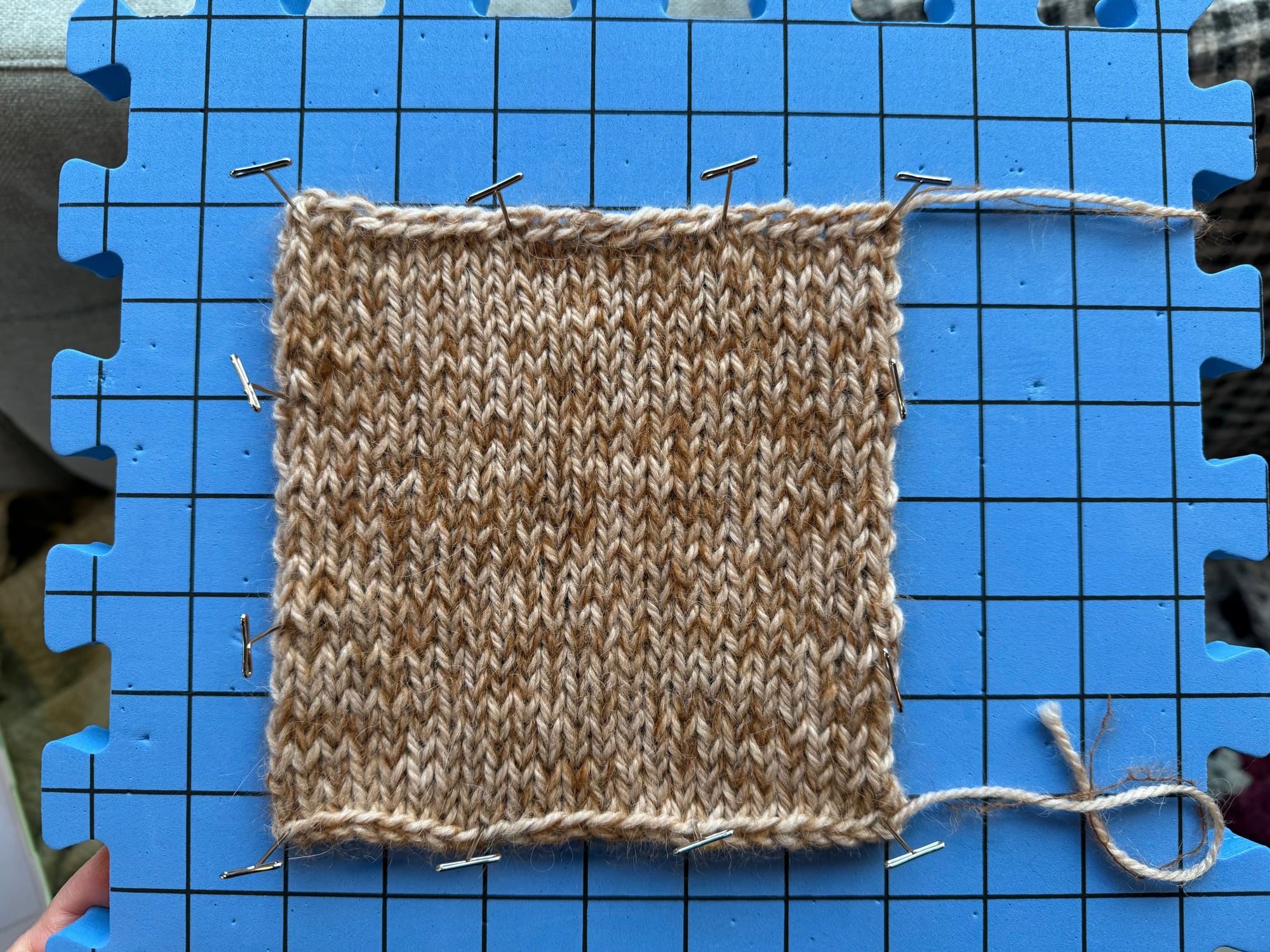 During this process, I learned that I should have measured my gauge swatch before AND after washing and blocking it so I could see how much the size changed through the blocking process. I didn't measure before blocking, so I had to kind of guess when I was deciding on the length of the body and sleeves later. Now I know.