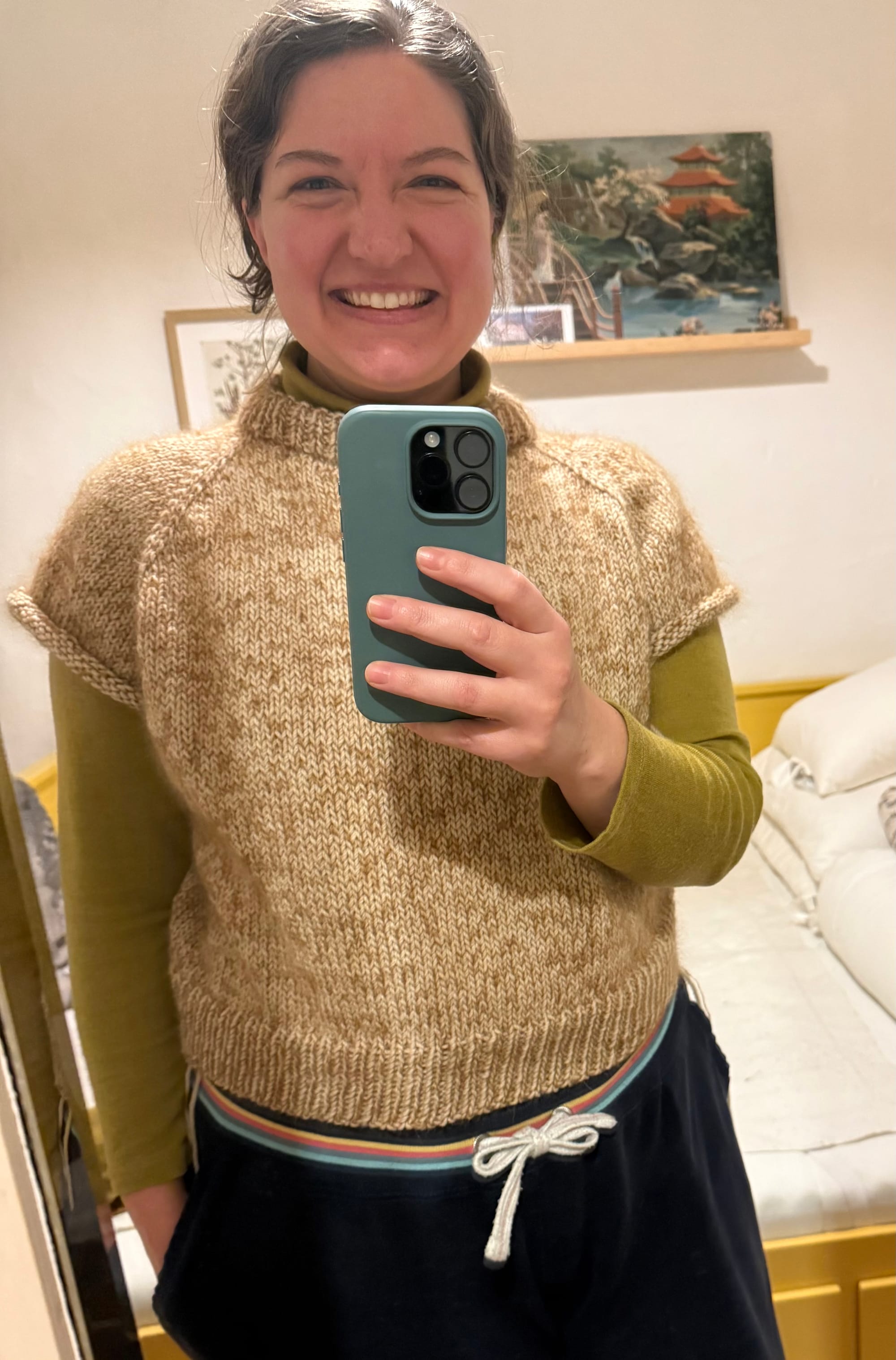 Watching the sweater grow in length was really fun, and so exciting when I finally got to try it on for the first time. (Also, isn't it wild how different this beige looks under different lighting?)