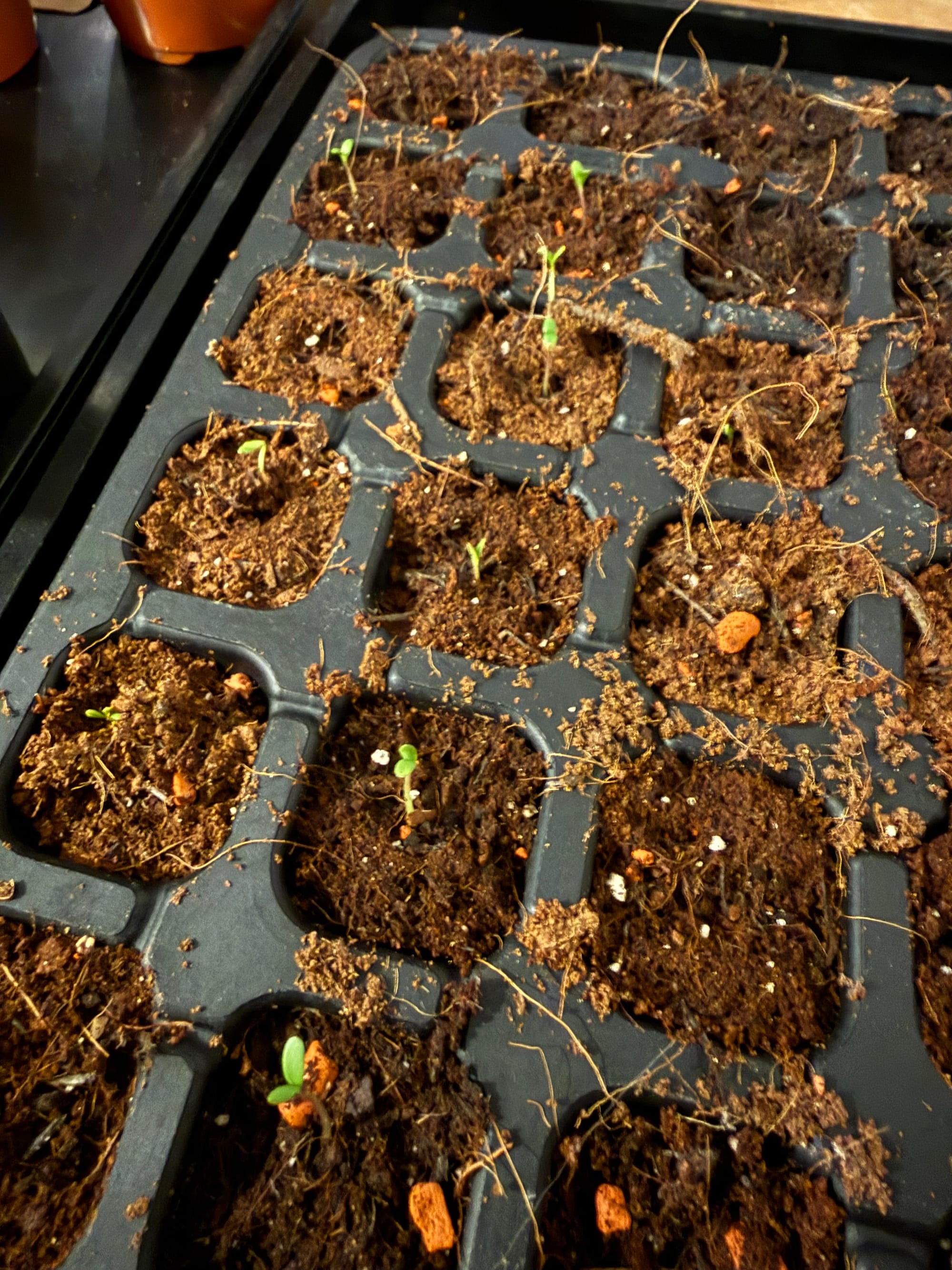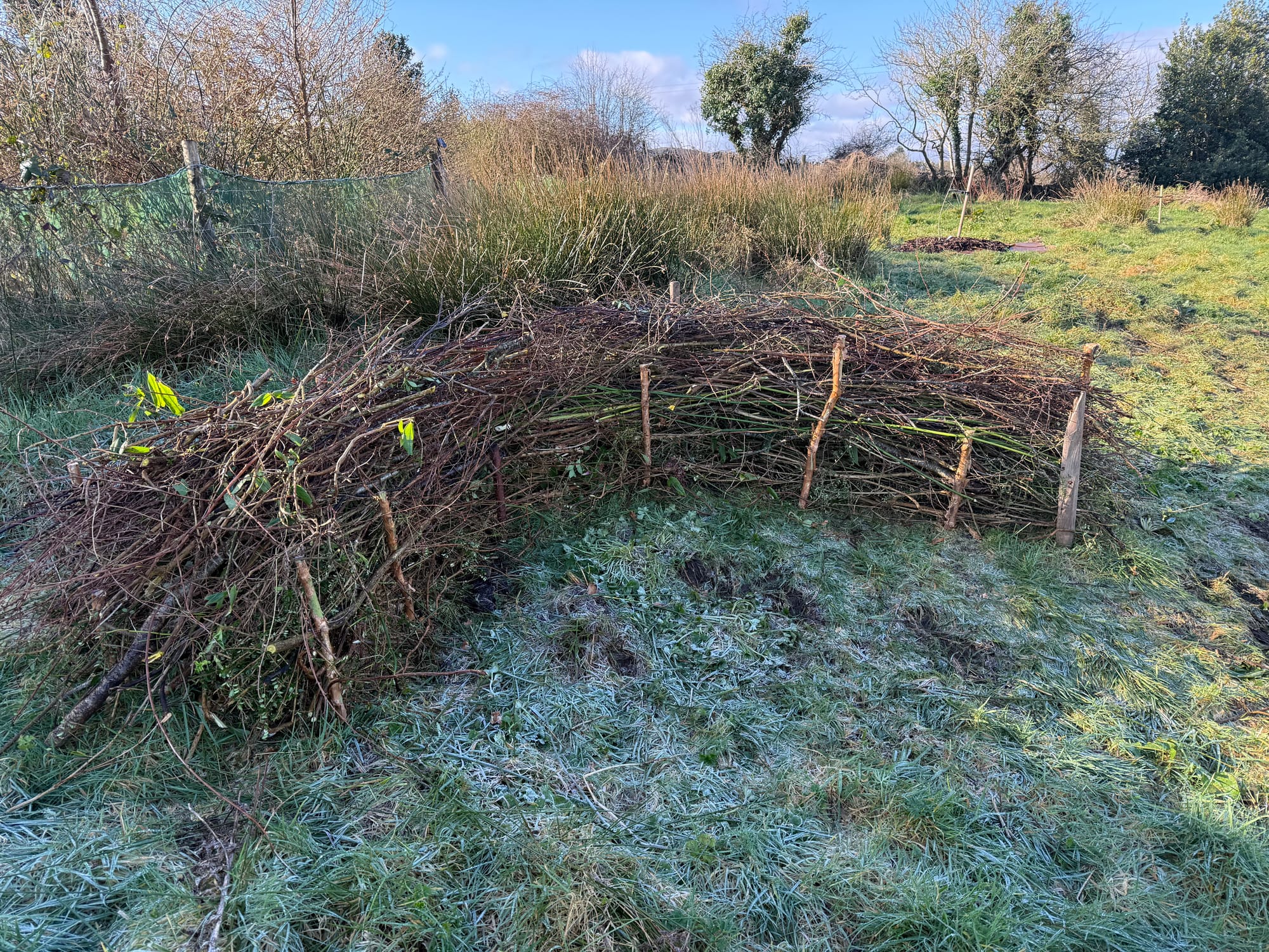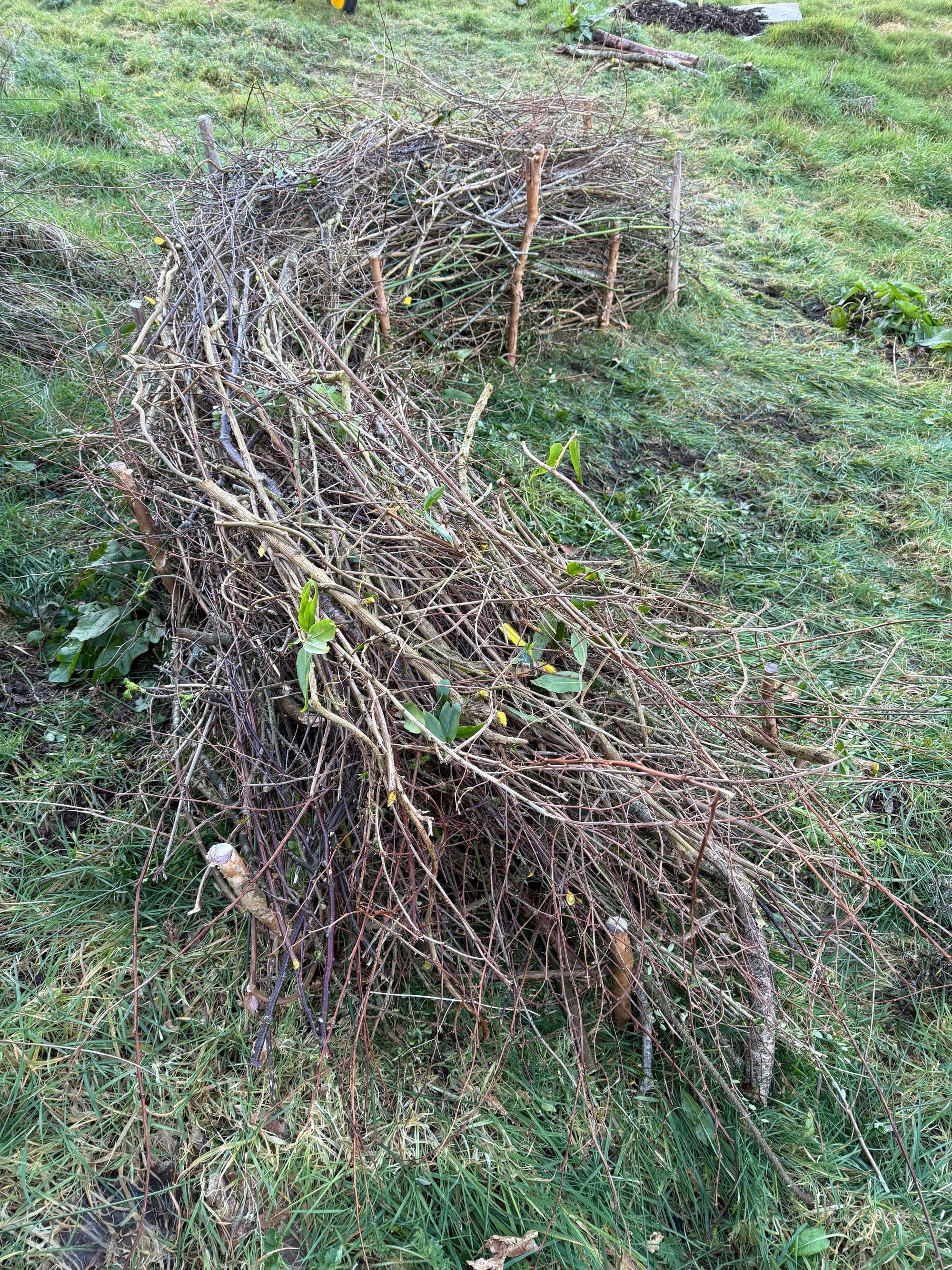 I haven't planted anything outside yet, but I am still trying to work on the garden for an hour or two whenever we have dry weather. I trimmed tons of trees and bushes at the beginning of the month; it didn't even make a dent in what needs trimming, but at least it was a start. I used those cut branches to start laying down a dead hedge in our field. I have big plans to create hedges (living and dead), living fences, and pathways all through the field over the coming years. I want to sculpt the space and make small nooks and points of interest where different types of plants and animals can thrive. Right now, the dead hedge is a small semi-circular curve, all alone in the middle of the field. But, trust me, I have a vision and it will eventually make sense, probably.