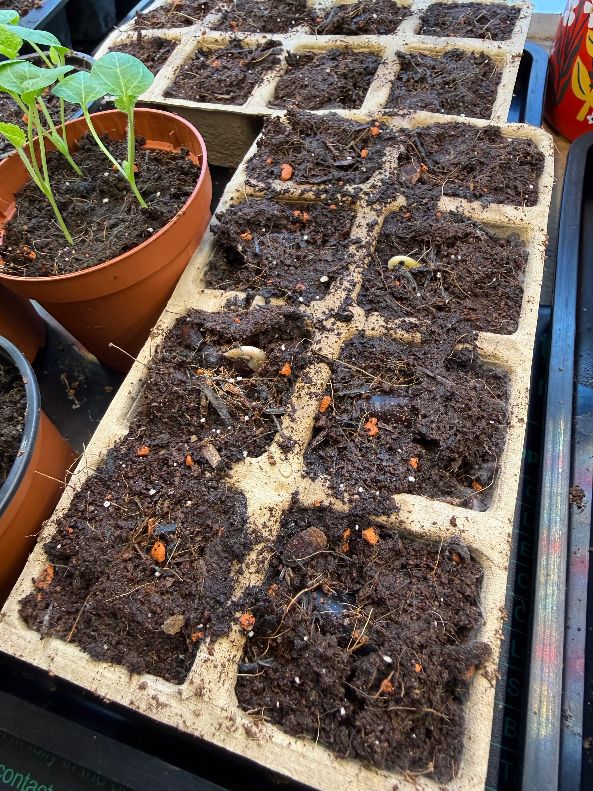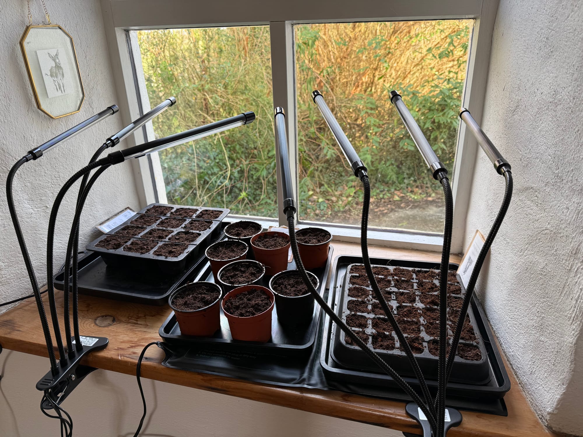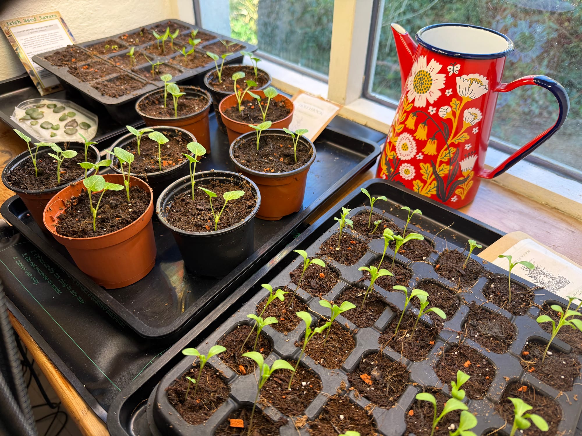 Let's start with the garden. Most of what I've done this month has been inside, we had a hail storm not long ago, and until last week we were still getting frost regularly overnight. But, I did start some seeds inside on my studio windowsill, and it is bringing me so much joy to see the little seedlings sprout leaves and start to thrive. So far I've planted woad, hollyhock, sweet pepper, and black beans. The black beans have only been in the soil for a few days and they're already starting to emerge.