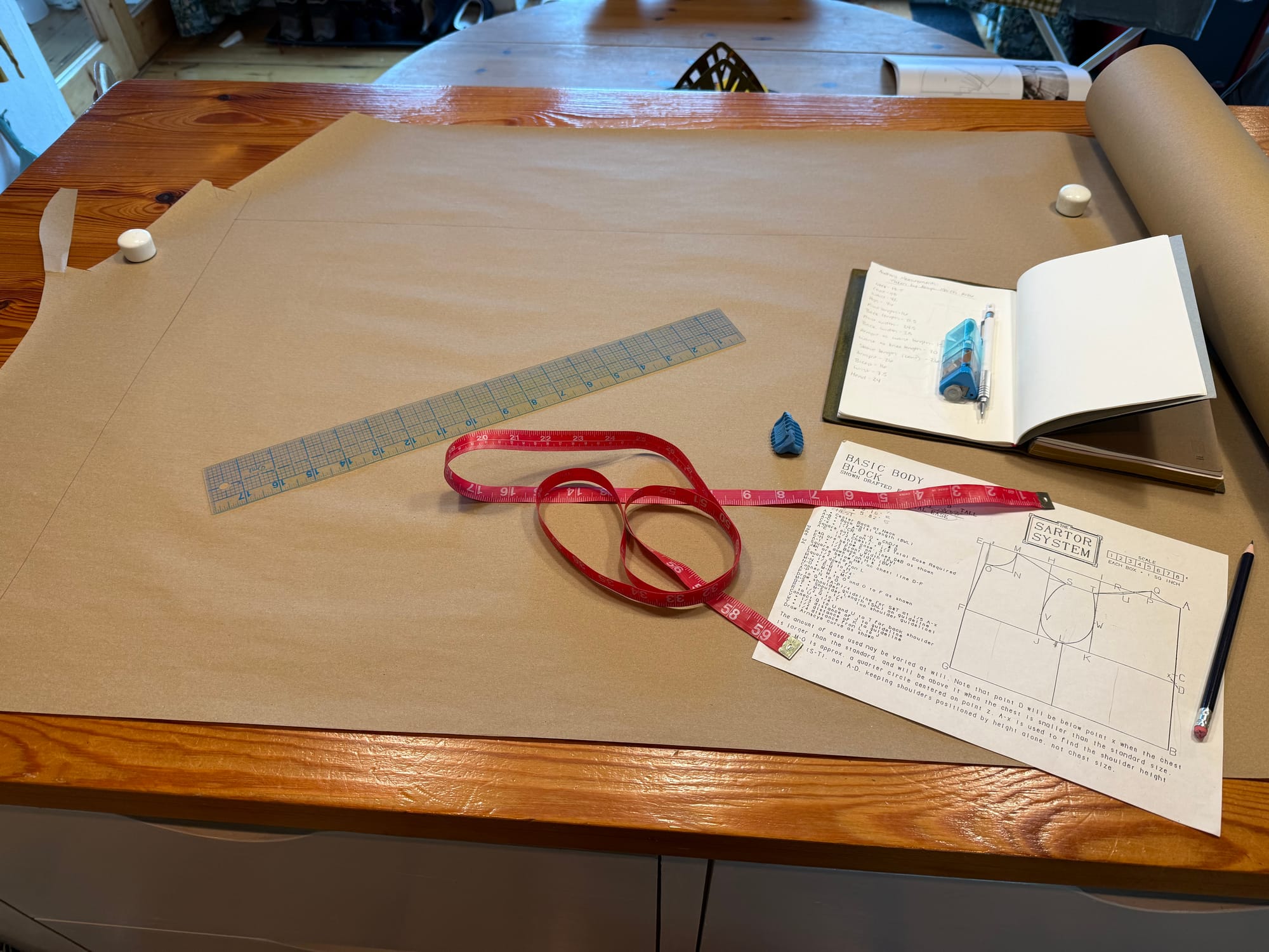 In my sewing studio, I've spent most of the month making patterns and mock-ups for the commissions I'm working on. I won't say too much about them yet, because I like when the person I'm making the commissions for gets to be the first to do a big reveal, but hopefully I'll be sharing photos of all my finished projects by the end of the summer.