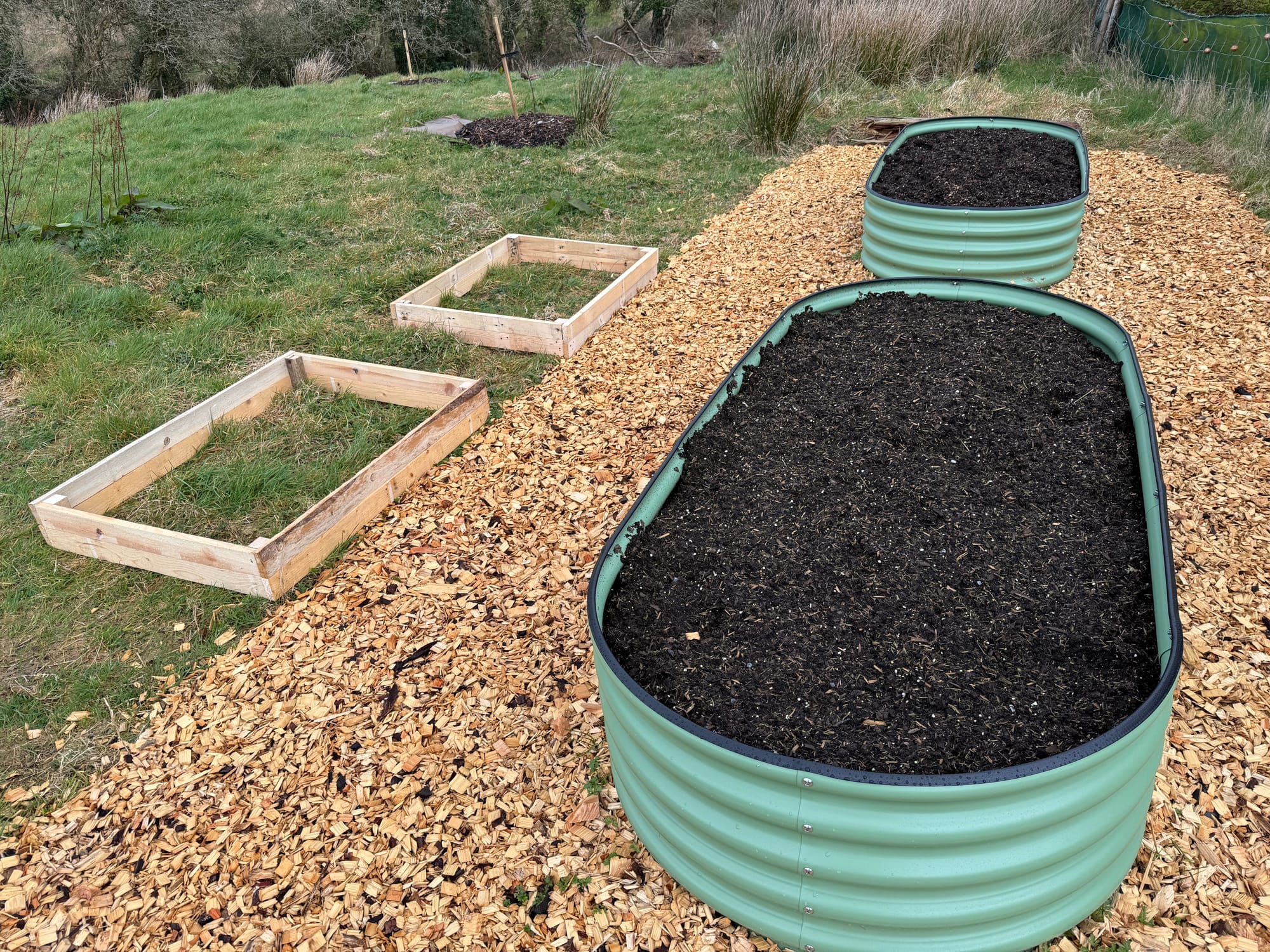 I also built two more small raised beds from scrap wood we had in our barn.