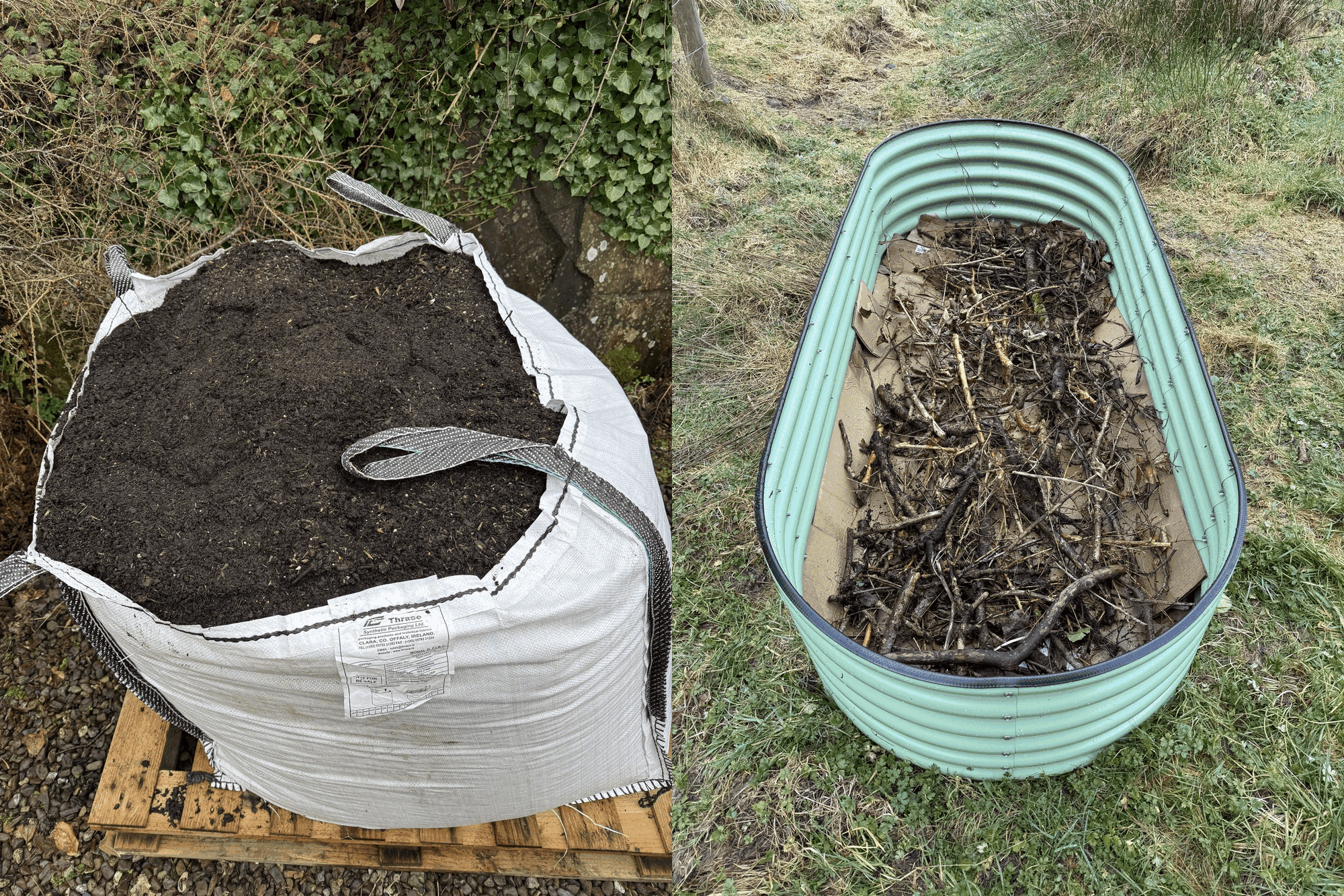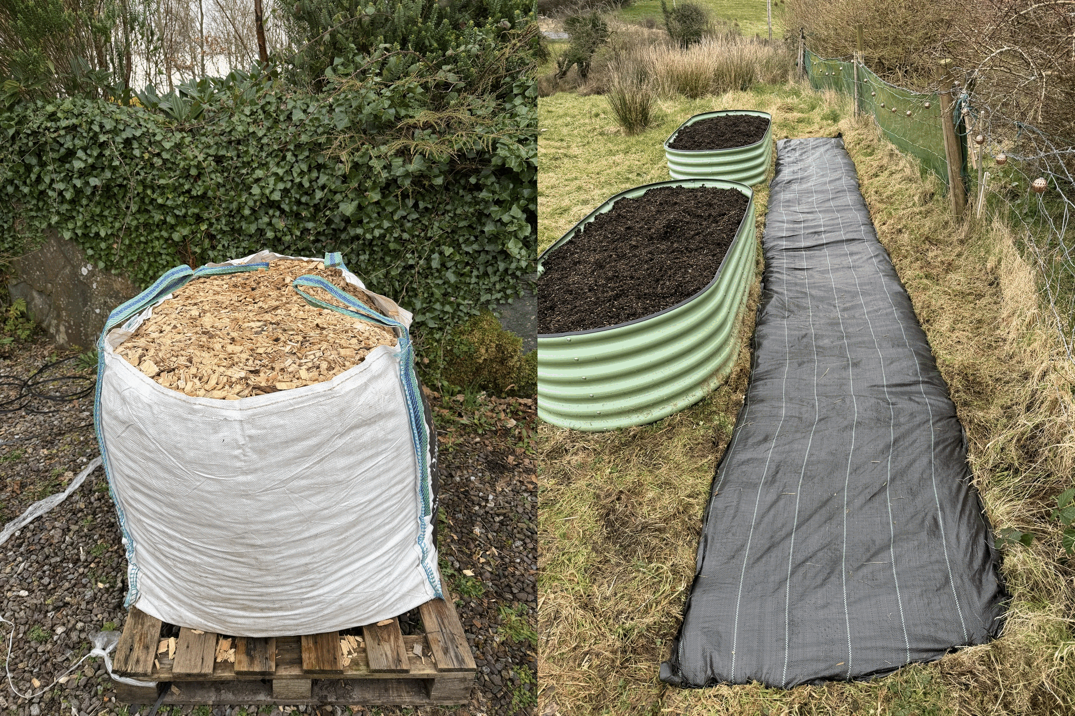 I've also been continuing to work on the area of the garden where we will be growing vegetables later in the season. The two big raised beds are filled and ready to be planted, and we spent an afternoon laying down weed suppressant and mulch all around them. We took a photo at the driveway and also at the raised beds each time we made a wheelbarrow trip, and ended up with these fun time-lapse gifs (Thanks Daniel 😄)! These make it look like it was so much less work than it actually was- MAGIC!